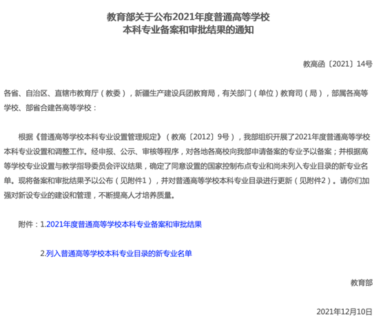 日前,教育部印发《关于公布2021年度普通高等学校本科专业备案和审批结果的通知》(教高函〔2021〕14号)。欧美av