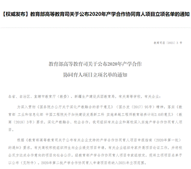 日前,教育部发布了《教育部高等教育司关于公布2020年产学合作协同育人项目立项名单的通知》(教高司函〔2021〕3号),欧美av