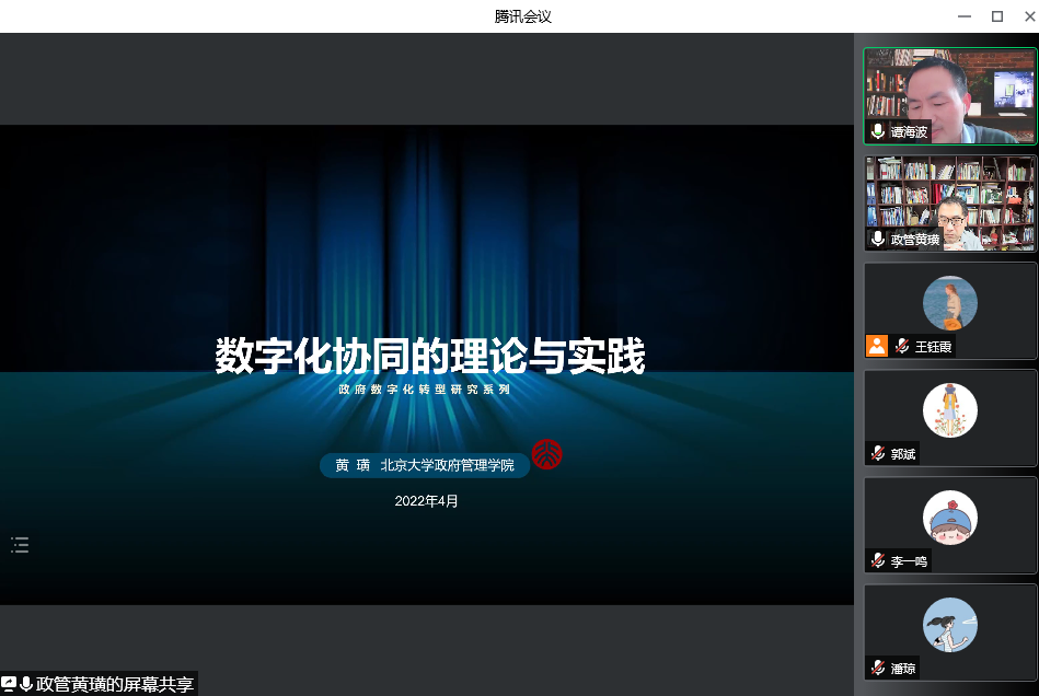 黄璜老师的精彩分享引发参会同学热烈讨论,吴高鹏、丁恒、晏稳、文宇和张建凤五位同学分别就“数字技术赋权公民实现数字化协同”、“政府与平台公司间的关系”、“特色产业部门数据治理协同”、“弥合城乡数字治理差异”以及“数字协同治理中的绩效考核”等若干问题进行了提问,黄璜老师一一予以耐心细致的解答。