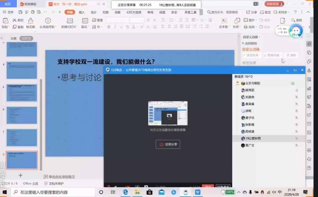 2019级硕士研究生党支部就如何奋力冲击国家“双一流”大学建设展开学习和讨论。本次会议由支部书记郑朝阳同志主持,党支部全体成员共同参与。