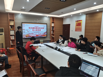 本科生党支部于11月28日在天马园区小会议室召开党员大会,支部书记闫振振为支部成员讲授《党风廉政建设和反腐败斗争》主题党课。