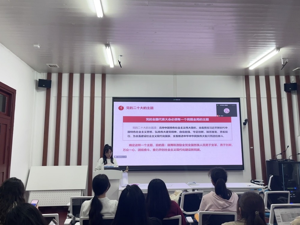 接着,由支部副书记江奕涵同志就党的二十大的主题和二十大报告中的主要内容进行宣讲。