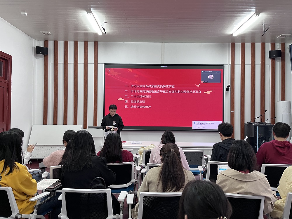 硕士研究生第一党支部在院楼221举行党员大会。大会由党支部书记曹丽康主持,在校学生党员参加。