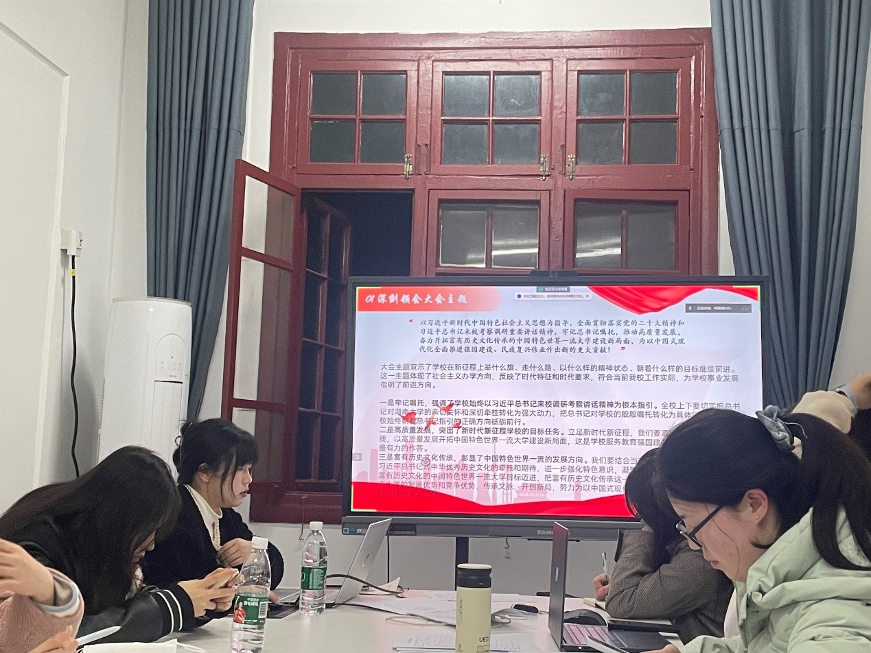 在本次专题学习中,何思缤同志从“读原文、抓重点、讲落实”三个部分,带领支部党员由浅入深地学习领悟了第十次党代会精神。党委报告原文阐述了学校过去取得的成绩和未来锚定的道路、方向和任务。学习第十次党代会精神要重点把握四个“深刻领会”,更要将党代会精神的内涵贯彻落实到日常工作中去。