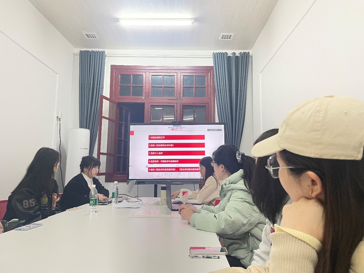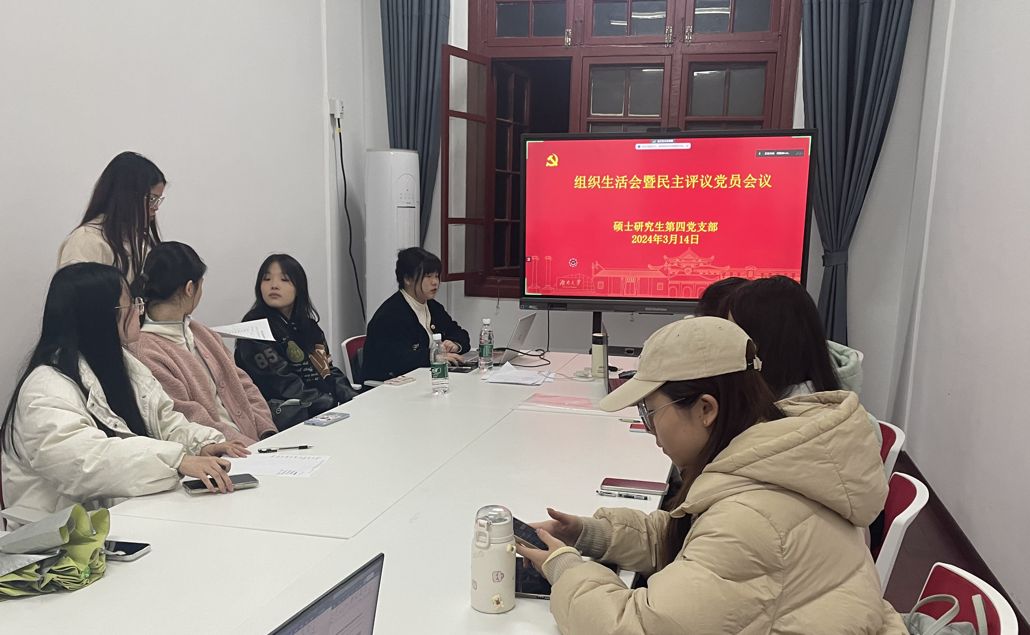 硕士研究生第四党支部在学院220室召开组织生活会暨民主评议党员大会。会议由支部书记何思缤主持,全体党员参会。