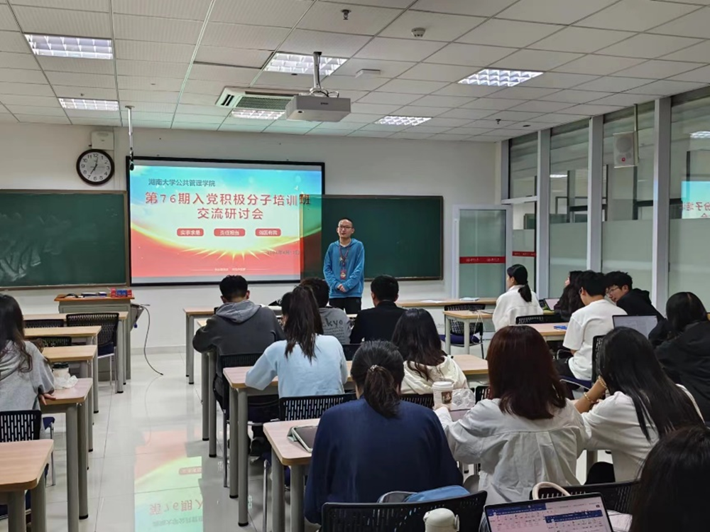 4月17日晚,第76期入党积极分子培训班交流研讨会在研究生楼C103教室举行,全体入党积极分子参与。