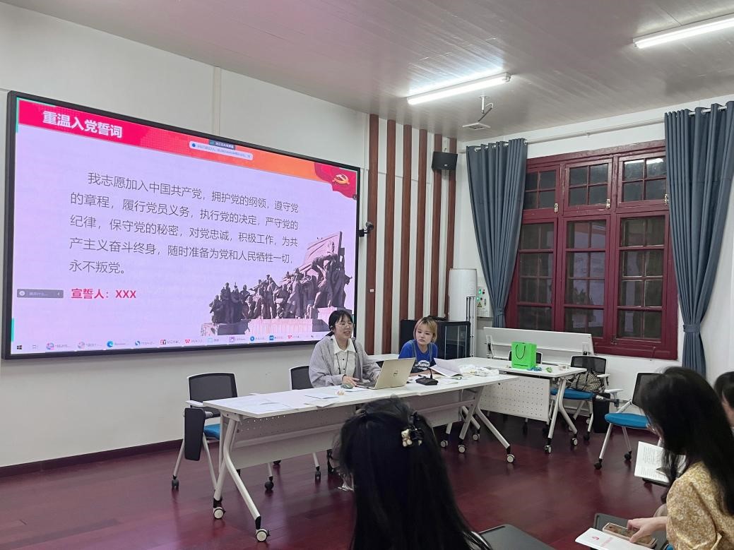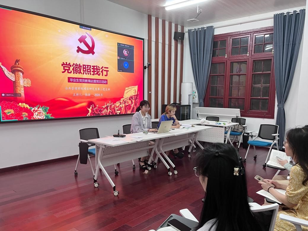 硕士研究生第二党支部在院楼221会议室开展“党徽照我行”毕业生党员教育主题党日活动。党支部书记张佳主持活动,支部全体党员参加。