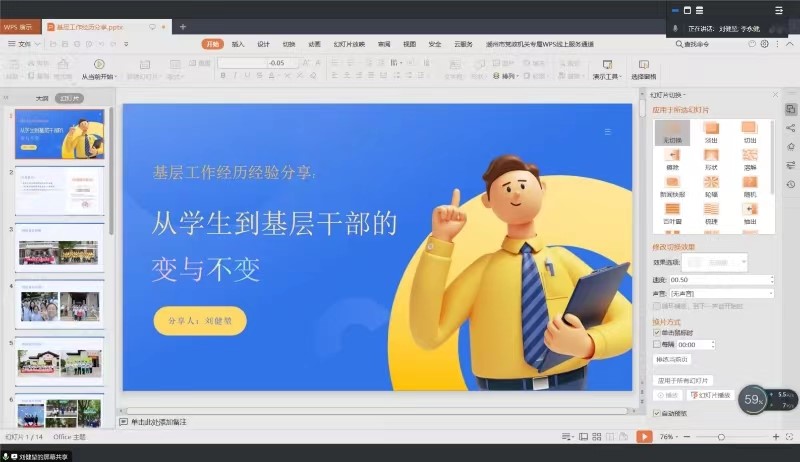 刘健堃回顾了在校时期与支部同志的深厚情谊,并根据近一年的基层工作经历,分析自己如何适应身份、环境和生活方式等方面的转变,并提醒支部同志要保持初心,提升党性,保持学习,将论文写在祖国的大地上。
