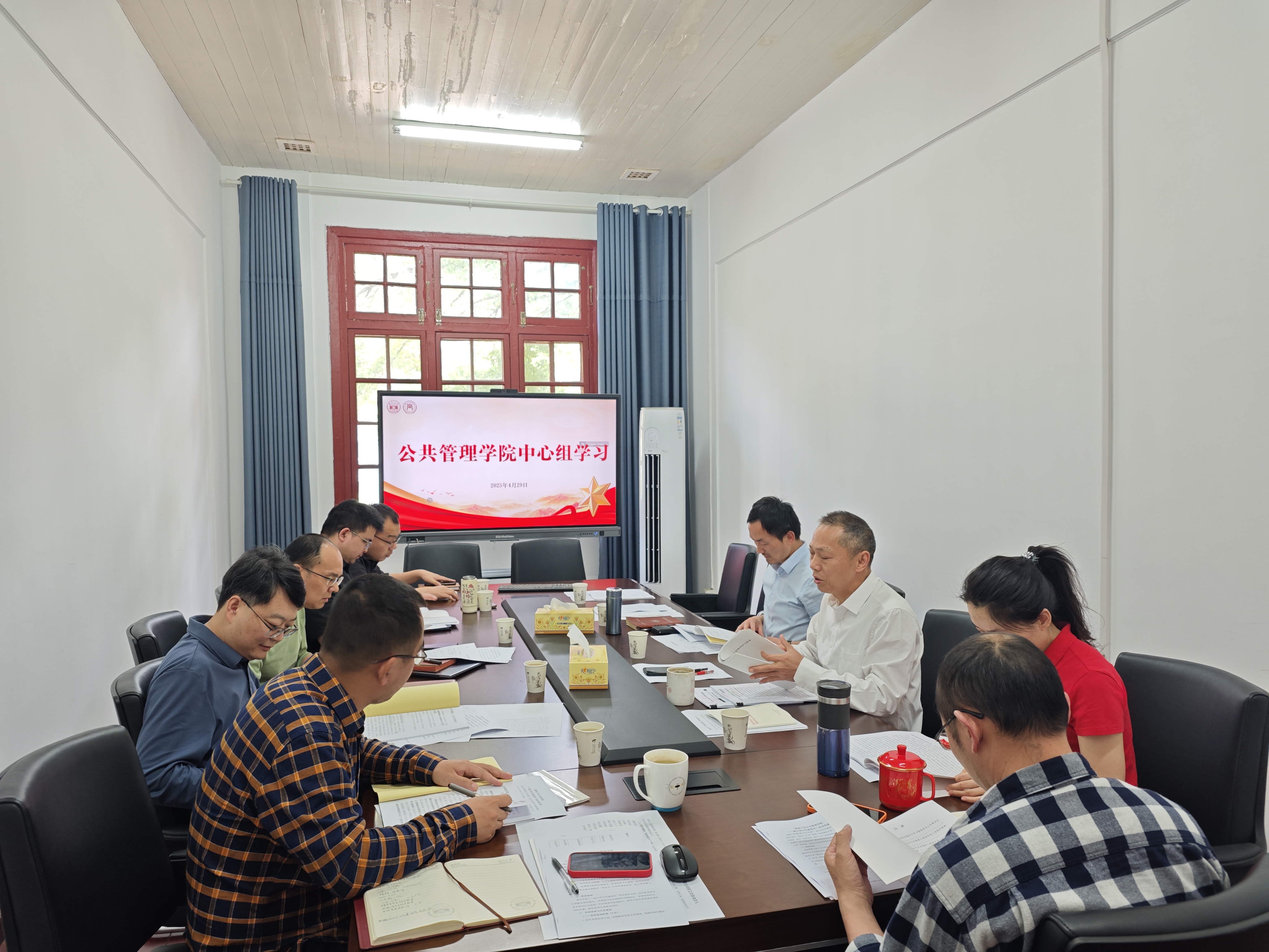4月29日下午,院党委理论学习中心组(扩大)在院206会议室举行2025年第3次集中学习。院党委书记宋杰主持并领学,院长谭海波、学院全体中心组在校成员及各教职工党支部书记参与学习研讨。