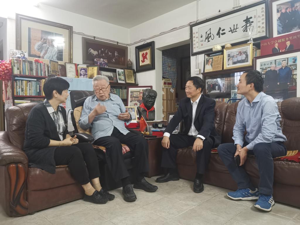 2019年11月9日,欧美av 李连友院长、付蓉芬书记、谭海波副院长一行赴中山大学拜访夏书章先生。百岁高龄的夏老先生精神矍铄,与李院长一行相谈甚欢。