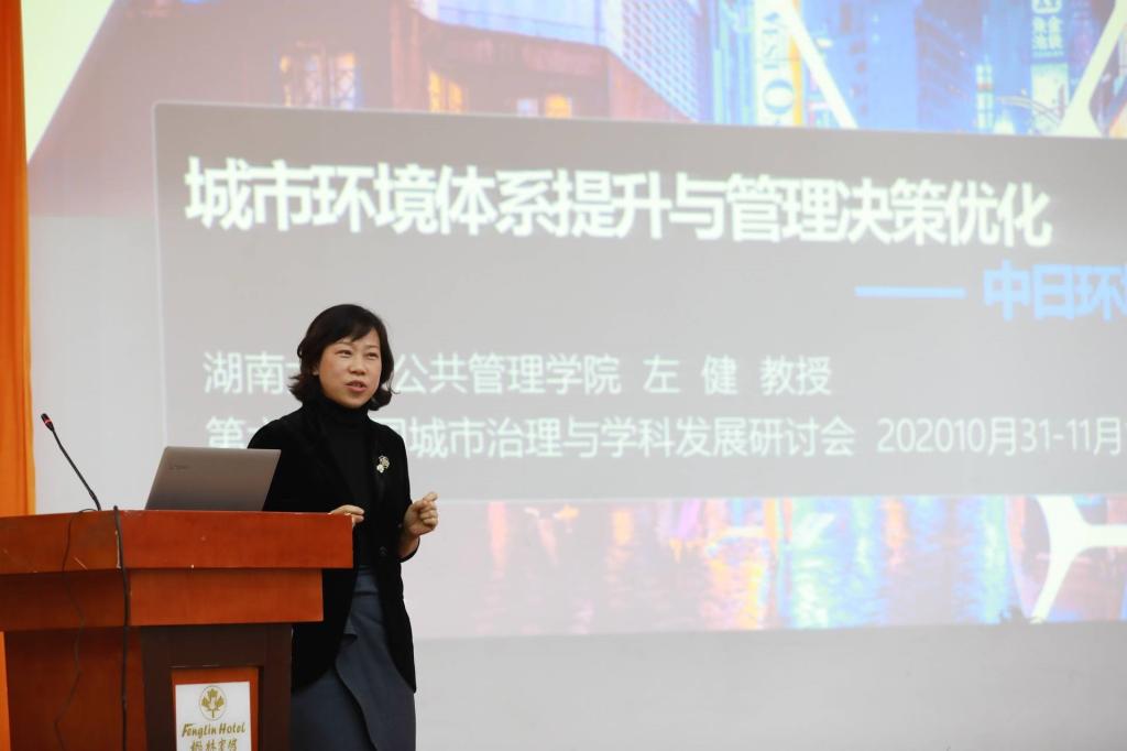 左健教授在关于“城市环境体系提升与管理决策优化”的演讲中,通过比较分析中日固体废物管理策略的差异,明确了我国现有环境政策的不足,提出未来应积极构建循环型社会,将环境治理作为建设健康、绿色、生态城市的关键一环。