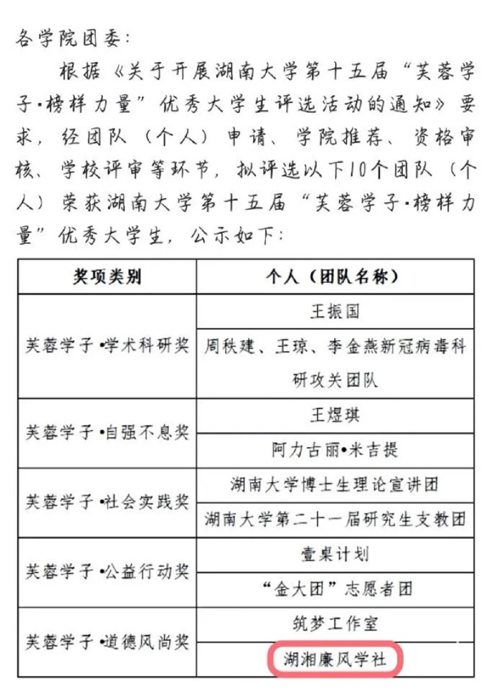 第十五届“芙蓉学子·榜样力量”评选活动中湖湘廉风学社荣获“芙蓉学子·道德风尚奖”;荣获欧美av