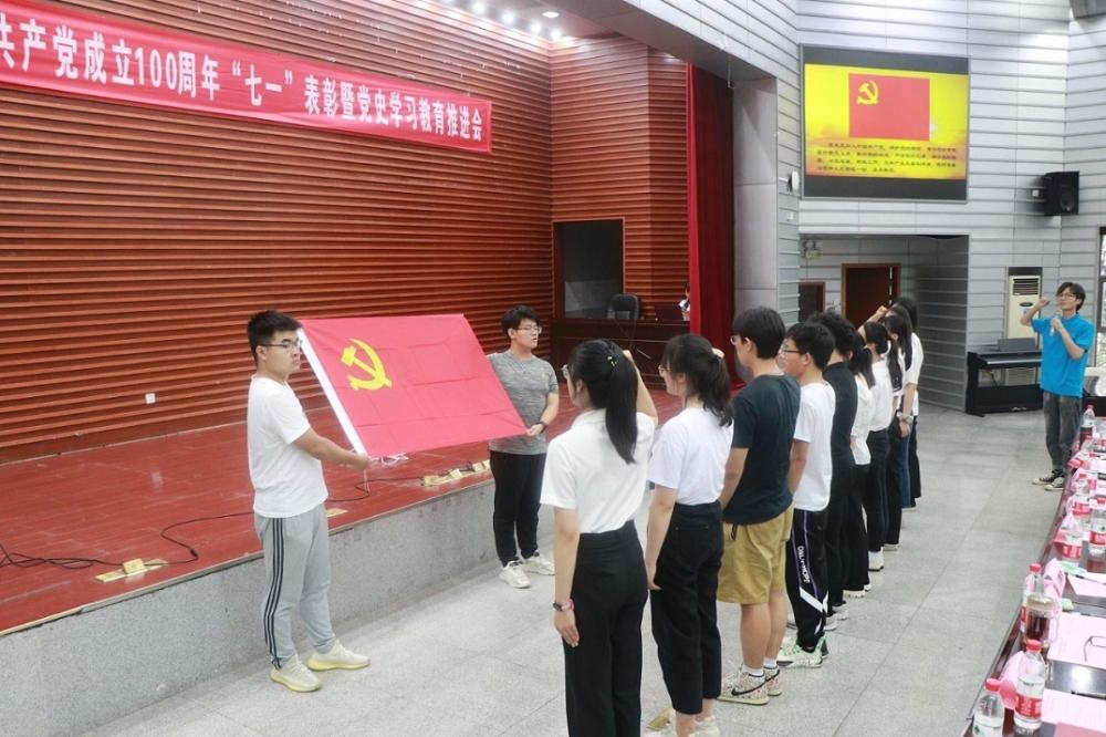 举办了2021年上半年新发展党员入党宣誓仪式。杜倩博副书记宣读《新发展党员名单》并对新发展党员表示祝贺,本科生辅导员闫振振带领新发展党员面向党旗进行庄严的入党宣誓。