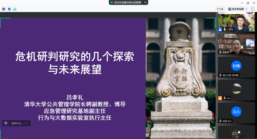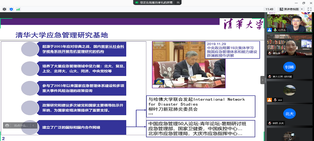 吕孝礼老师在开始分享之前,给我们介绍了清华大学应急管理研究基地的发展概况。