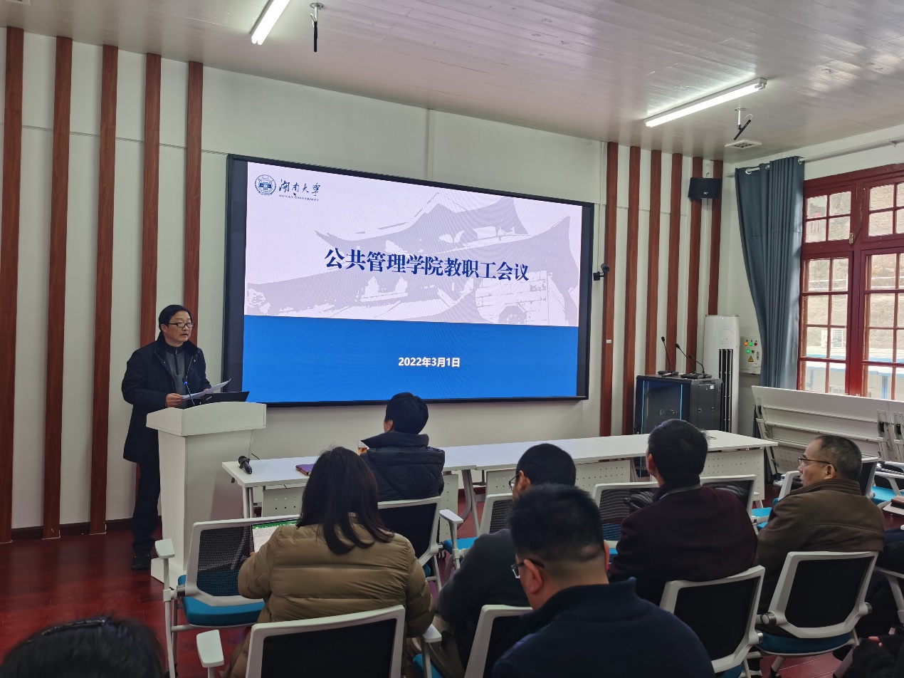会上,院长李连友作新学期工作讲话,向全体教职工致以新春问候并传达了学院务虚工作会议相关精神,部署新学期各项工作,李院长表示本学期学院将继续在学科建设、学位点建设、人才培养、师资队伍建设等方向发力,推动各项工作迈上新台阶。