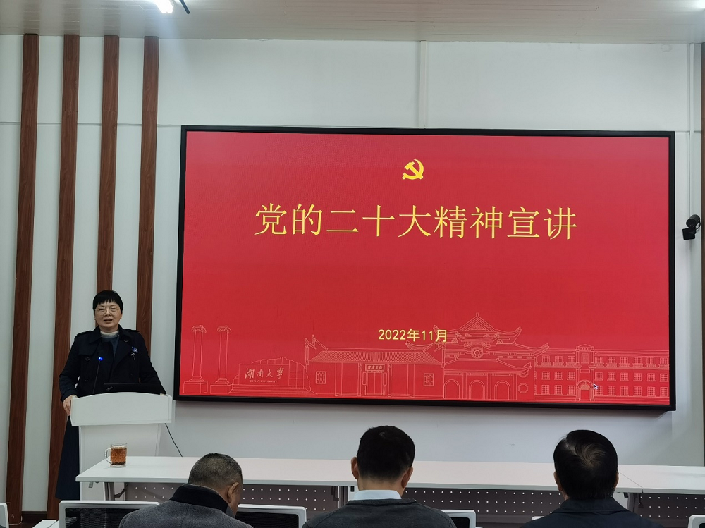 2022年11月15日下午,欧美av 召开全体教职工会,专题学习党的二十大会议精神,院党委书记付蓉芬领学。