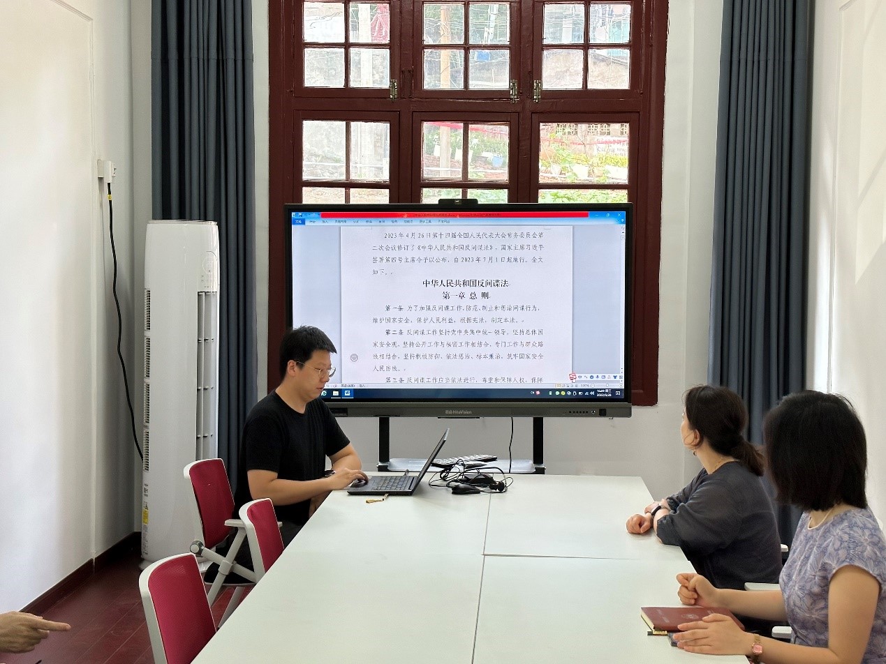 2023年6月28日,欧美av 机关党支部在学院220会议室召开会议,专题学习《中华人民共和国反间谍法》。会议由支部书记李释然同志主持。