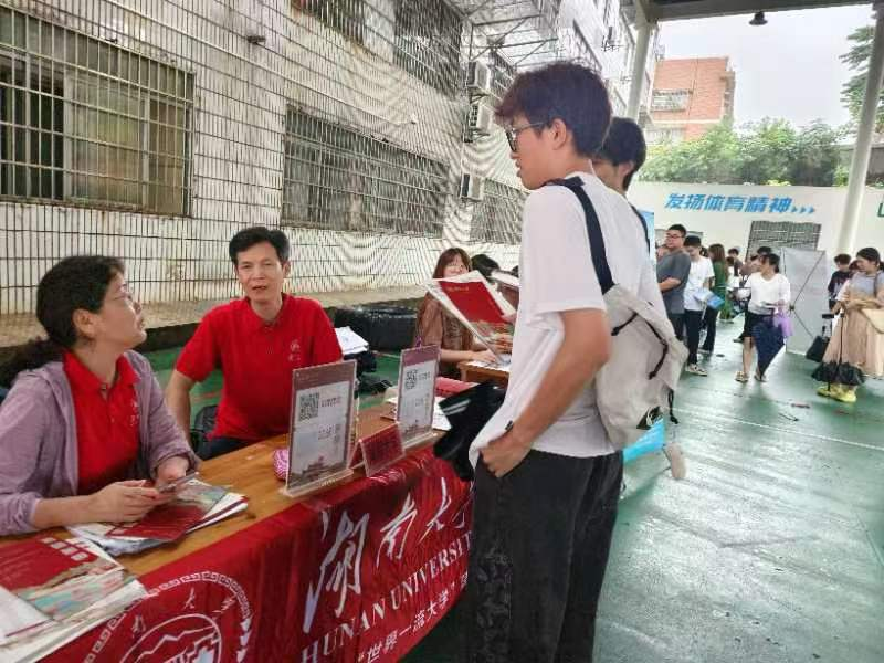 6月25日至28日,欧美av 负责的湘潭市招生咨询工作顺利开展。工作组一行14人、分7组赴湘潭市的湘潭市一中、湘潭县一中、凤凰中学、湘乡市一中、东山学校等8个省示范中学,开展了一系列精心策划的招生宣传活动。