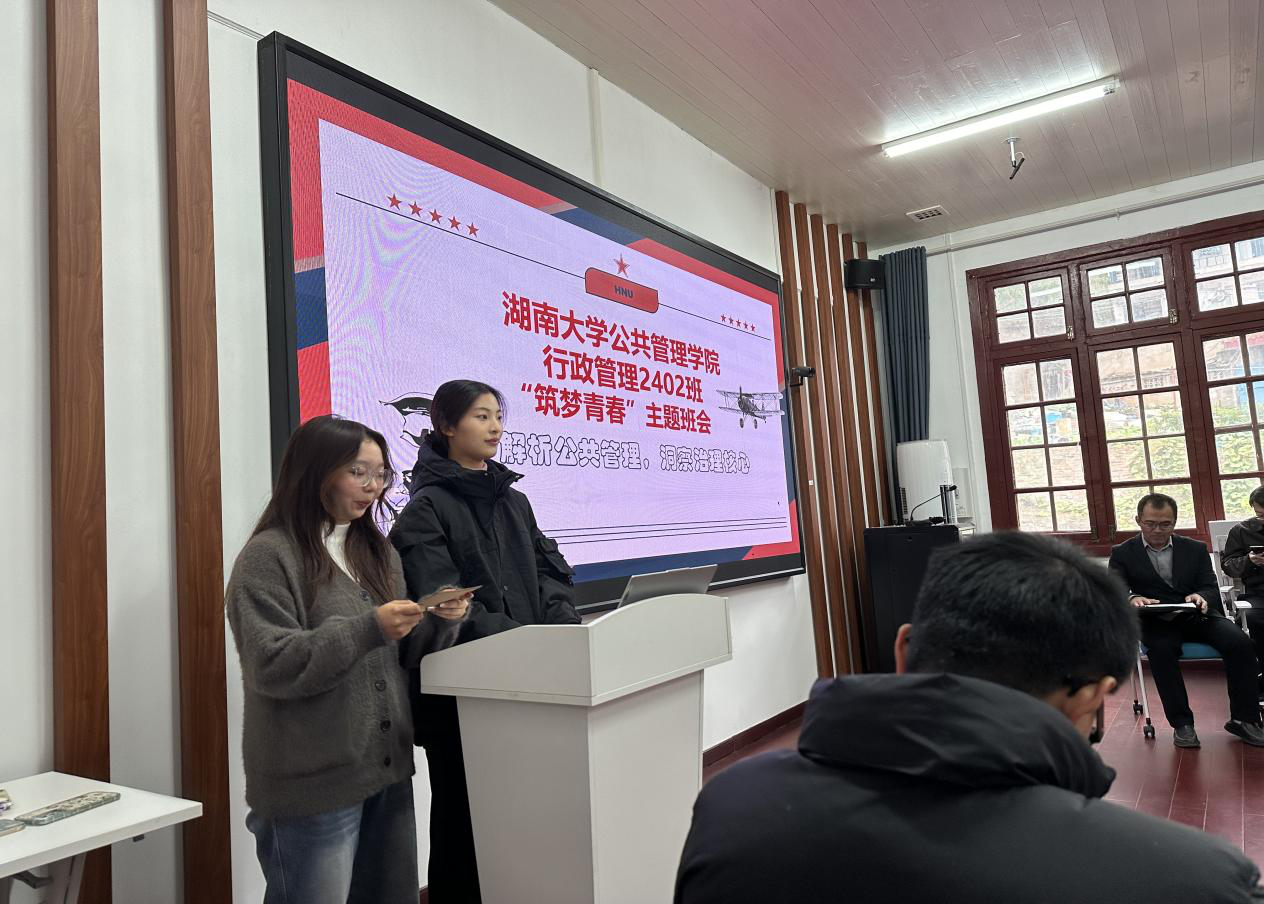 行政管理2402班“解析公共管理,洞察治理核心”主题班会成功举行。副校长汪卫斌、学工部副部长邓昌富、该班主任赵岩出席,杨柳与周依格同学主持。