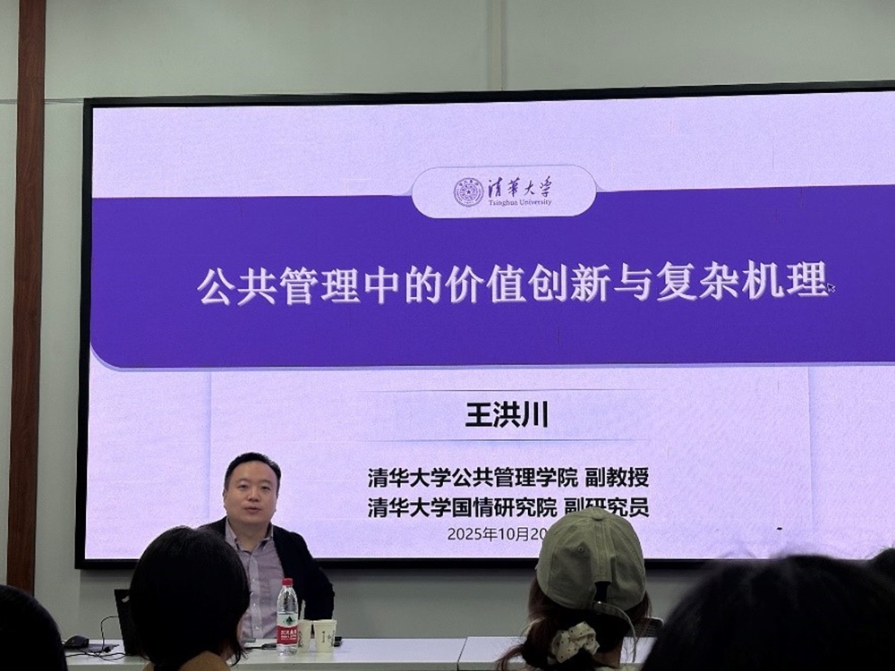 王洪川副教授首先以公共管理学科作为研究切入点,系统对比了中外公共管理学科的发展差异。他指出,中国公共管理学科以国家治理的现实需求为指引,始终秉持以人民为中心的发展理念。通过结合中国民生国家建设的实践探索,王教授进一步阐明了民生国家与福利国家在制度设计上的本质区别,并提出公共管理研究范式应由传统的供给导向向需求导向转型。其次,王教授引入复杂科学理论视角,深入解析了复杂适应系统的核心特性及其内在机理。他强调,在公共管理的政策制定与执行过程中,必须充分考虑系统内部多层次结构的嵌套特征及其动态交互影响,以提升政策实施的科学性和有效性。最后,王教授就公共服务的未来发展方向展开系统论述,着重强调应构建具有中国特色的公共服务自主知识体系。他提出,需建立涵盖多层次治理主体、多维度价值取向的公共服务研究框架,为推进国家治理体系和治理能力现代化提供理论支撑。