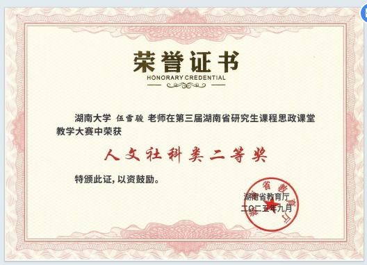 教师伍雪骏依托《政治学基础理论研究》课程荣获人文社科组二等奖。