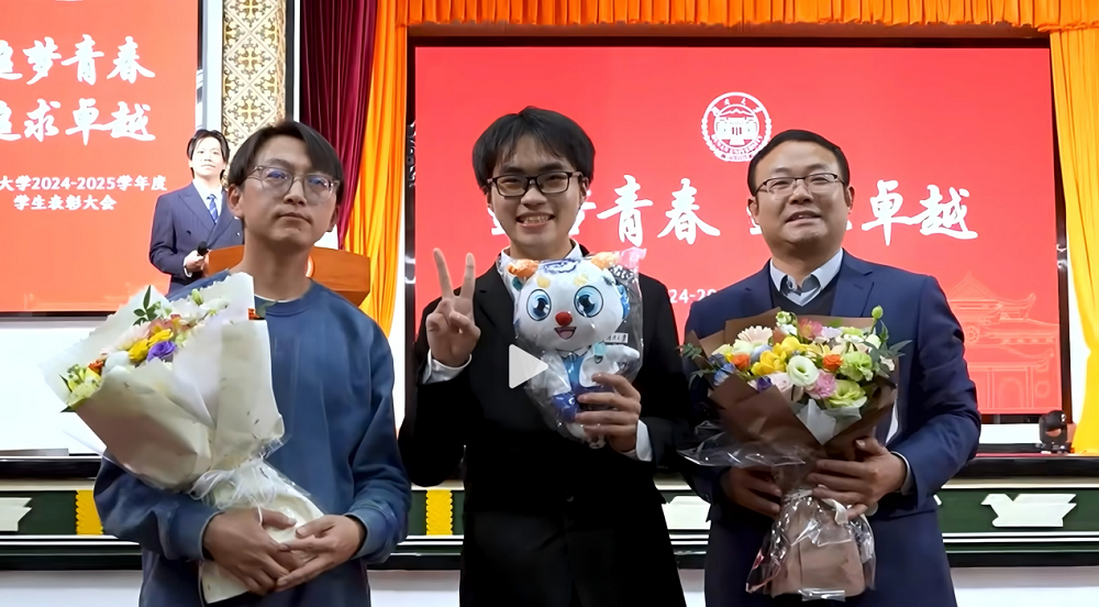 乔冠伦同学荣获“优秀学生标兵”,并作为代表进行主题汇报。乔冠伦同学毕业中学、湖北省襄阳市第四中学校长刘明国、班主任谷甫受邀到场见证。