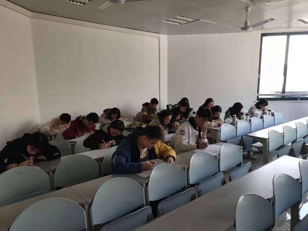 正式开考之前,付蓉芬向所有参考同学说明了此次考试的用意,表示考试不是目的,而是希望以考促学,通过考试的方式,让大家在考试前去认真复习题库知识,去详细了解“两学一做”精神内涵。中午1点,考试正式开始,整个考试过程中,同学们奋笔疾书,秩序井然,付蓉芬往返于三个考场认真巡视。根据同学们的答卷的大致情况来看,绝大部分同学对基础知识掌握良好,同学们对学党的十九大报告、十九届四中全会公报、党章、《中华人民共和国宪法》、《习近平关于“不忘初心、牢记使命”重要论述选编》、《习近平新时代中国特色社会主义思想学习纲要》等都有比较深入的了解。