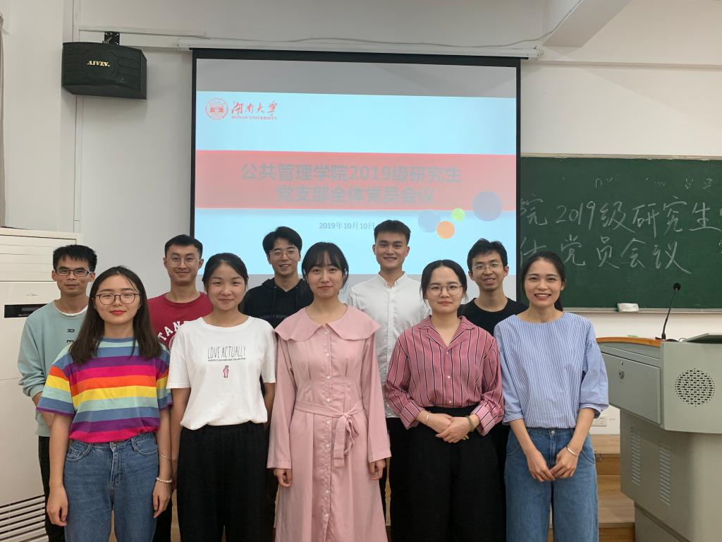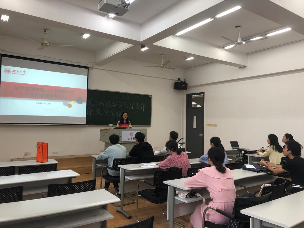 召开了2019级研究生党员全体会议,出席本次会议的有党务与人才培养办公室主任杨锦滔老师、研究生兼职辅导员郑清清。