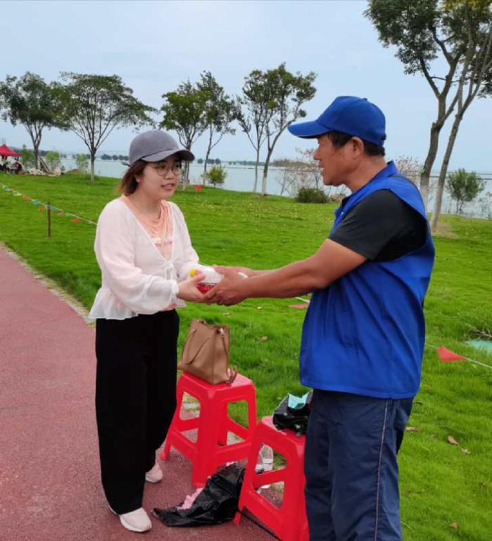 8月9日,小组成员项慧敏同学参与合肥市包河区高铁南站志愿服务联合会举办的烟墩防汛抗洪志愿活动,志愿活动地点位于巢湖大堤卫王段。由于前段时间连续的降水,巢湖水位上升至百年一遇的最高水位。本次志愿活动内容主要为秩序保障,阻止游客涉险靠近岸边。项慧敏同学在志愿活动中切实感受到了志愿者默默奉献、不惧高温的志愿服务精神和抗洪防汛工作中社会组织发挥的积极作用,同时在与志愿者的交谈中也进一步了解到,本次防汛抗洪过程中该志愿组织开展的物资保障、秩序保障、巡堤查险等工作。
