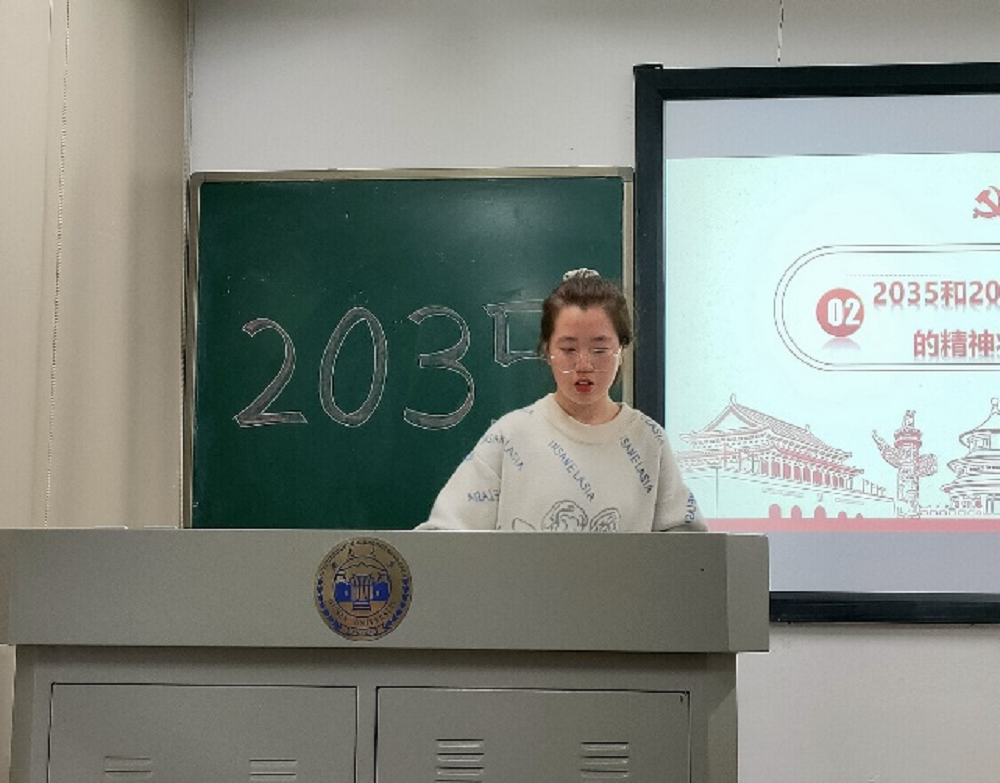 首先,团支书刘宇彤同学为大家引入2035年远景目标与当代青年的密切联系,并先后介绍四个主要部分:“六个讲清楚”、2035和2050青少年应有的精神状态和担当、十九届五中全会精神、习近平总书记考察欧美av