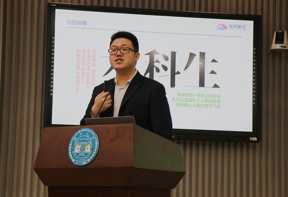 外国语学院19届毕业生、旭辉集团湖南区域校招负责人张愿,从HR角度,针对面试中的套路和反套路,结合自身求职面试中的经验,向大家介绍了面试时自我介绍的目的、主要内容以及准备工作等,并为在场的同学分享了一些面试技巧。张愿由自身的校园经历讲到面试中的金字塔思维、压力面、宝洁八大问和STAR法则,并重点向同学们介绍了群面这一面试考察方式,对群面的内涵、考察要点以及适用岗位等内容进行了深入探讨。通过互动问答,同学们对校招面试的内容、特点和形式有了更多的认识和了解,树立了求职信心。