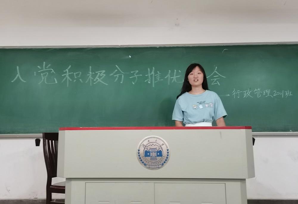 行政管理2001团支部于综合楼101教室开展推优入党大会。会议由团支书高晓蕾同学主持,行管2001团支部全体同学参加,团委组织部干事方佳辉同学全程监督。
