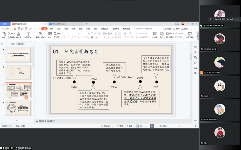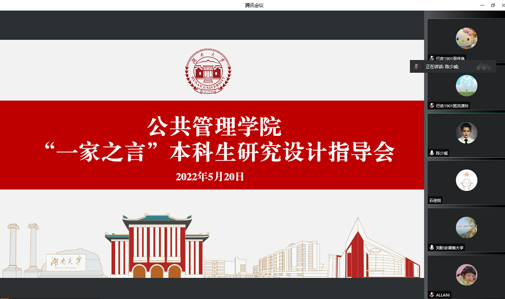以线上会议的形式召开了研究设计指导会。本次会议面向2019级有保研意向的本科生,邀请陈少威老师、刘盼老师、陈坤秋老师进行指导和点评。