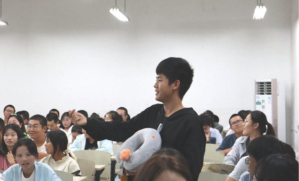 宣讲过程穿插着激动人心的有奖问答以及抽奖环节。主持人分别在团委、学生会宣讲结束后组织开展了有奖问答活动,同学们举手抢答各宣讲人就宣讲内容提出的问题,答对者赢得礼物。抽奖环节中,二、三等奖采用微信面对面建群后发布抽奖链接随机抽取的方式,一等奖的抽取通过告知同学们学生会主席团执行主席蔡朋城同学手机号码的前十位,猜对最后一位数字并拨通其手机的第一位同学获奖。有趣的活动环节使宣讲会充满欢声笑语,为同学们的报名热情再添一把火。