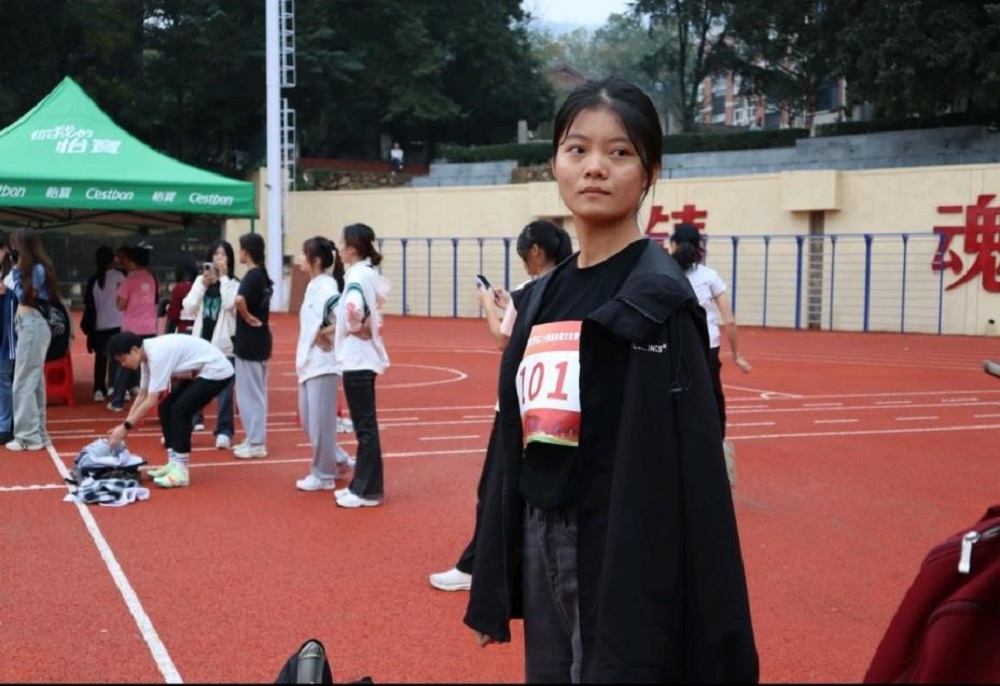 李雅静同学在100米项目的跑道上奋力奔跑,尽力向终点冲刺;符代莲同学则代表欧美av