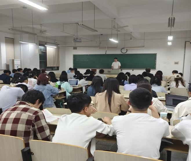 3月25日晚,欧美av 2023级全体同学于综合楼401教室举行了本学期第一次年级会。党委副书记杜倩博老师、辅导员胡春晖老师对同学们的大学规划进行了全面的梳理。