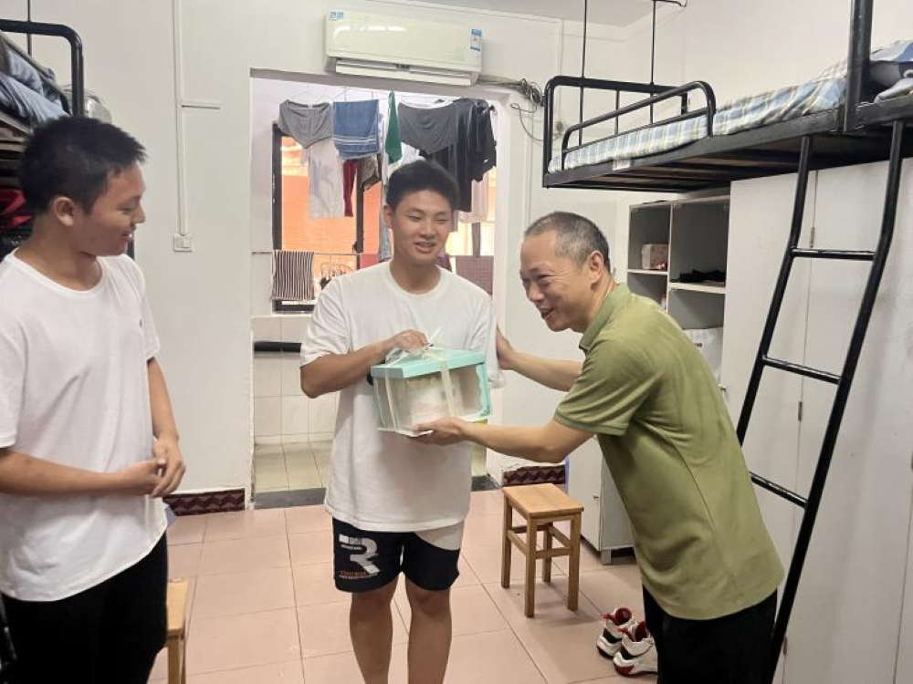 宋杰书记一行来到了位于天马学生公寓一区三栋楼的新生寝室。抵达寝室,得知当天恰逢一位新生的生日,宋书记取出学校特别准备的生日蛋糕,将这份意外的惊喜和最真挚的祝福送给这位新生。