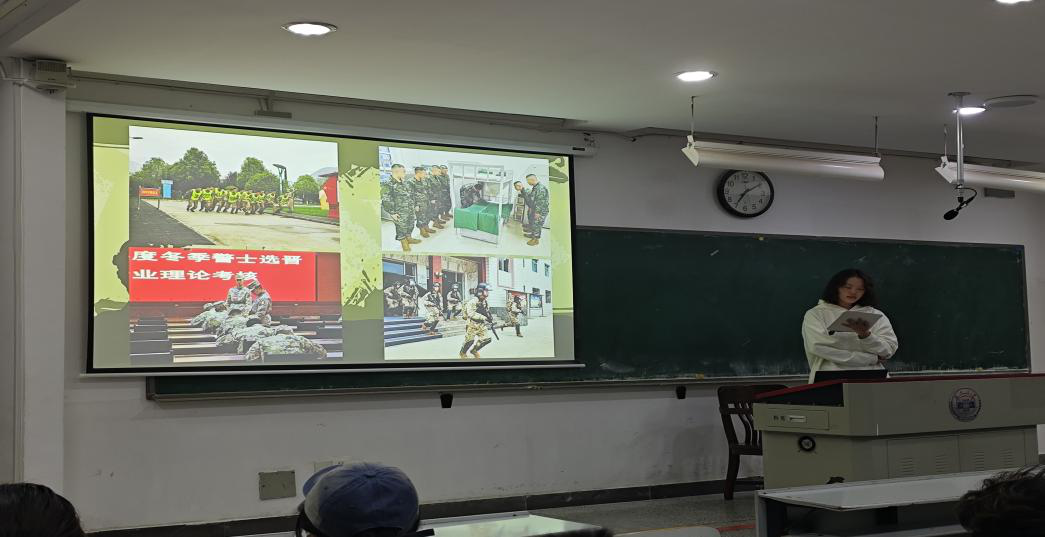 同环境科学与工程学院于11月18日在综合教学楼209教室成功举办了“退伍军人展风采 红色文化进校园”主题宣讲活动。本次活动邀请了材料院23级退伍军人朱锦秀与学院学生共同交流。