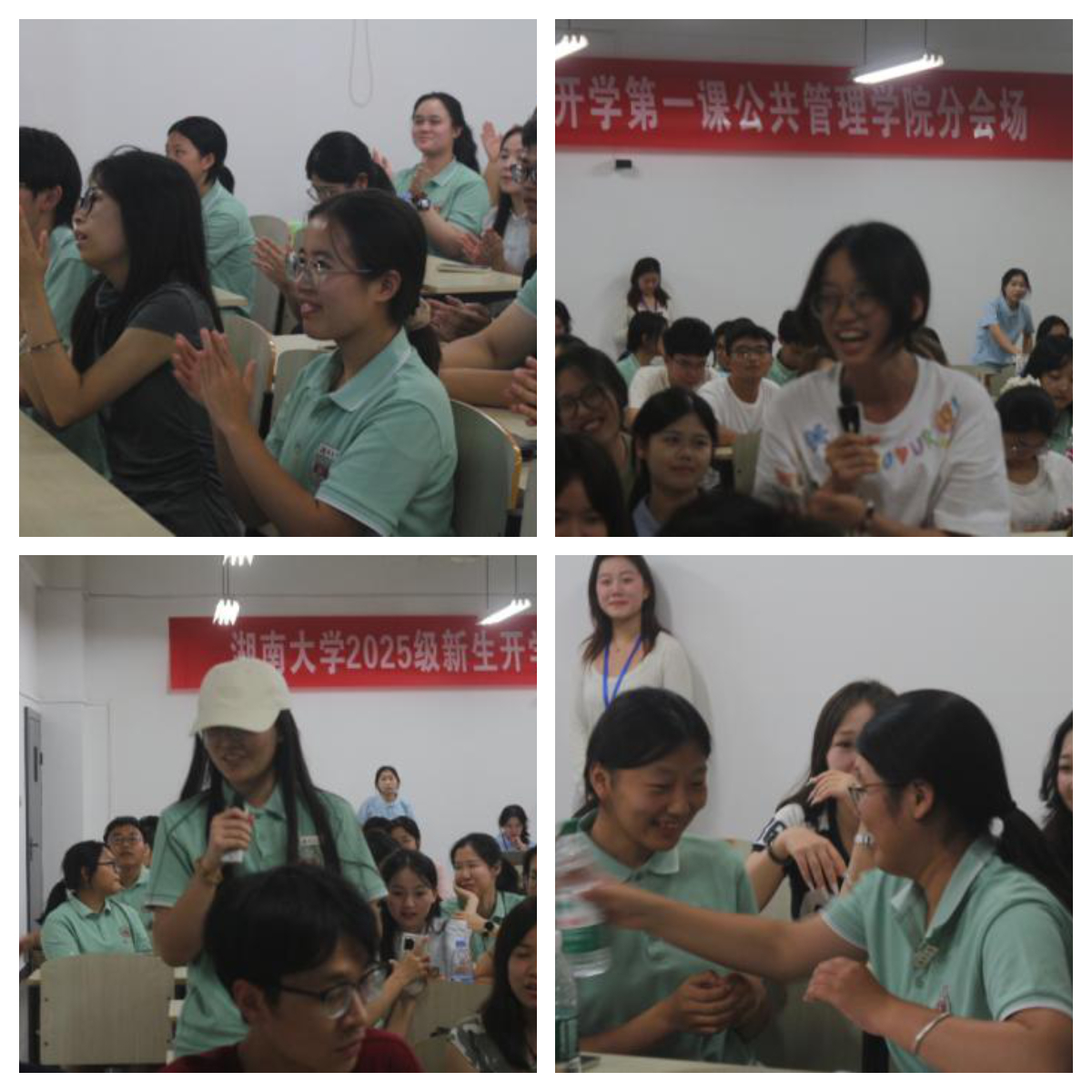 环节结束后,积分最低的班级上台表演。随后,2503 班的班助与新生分别登台,带来了精彩表演,赢得全场掌声。