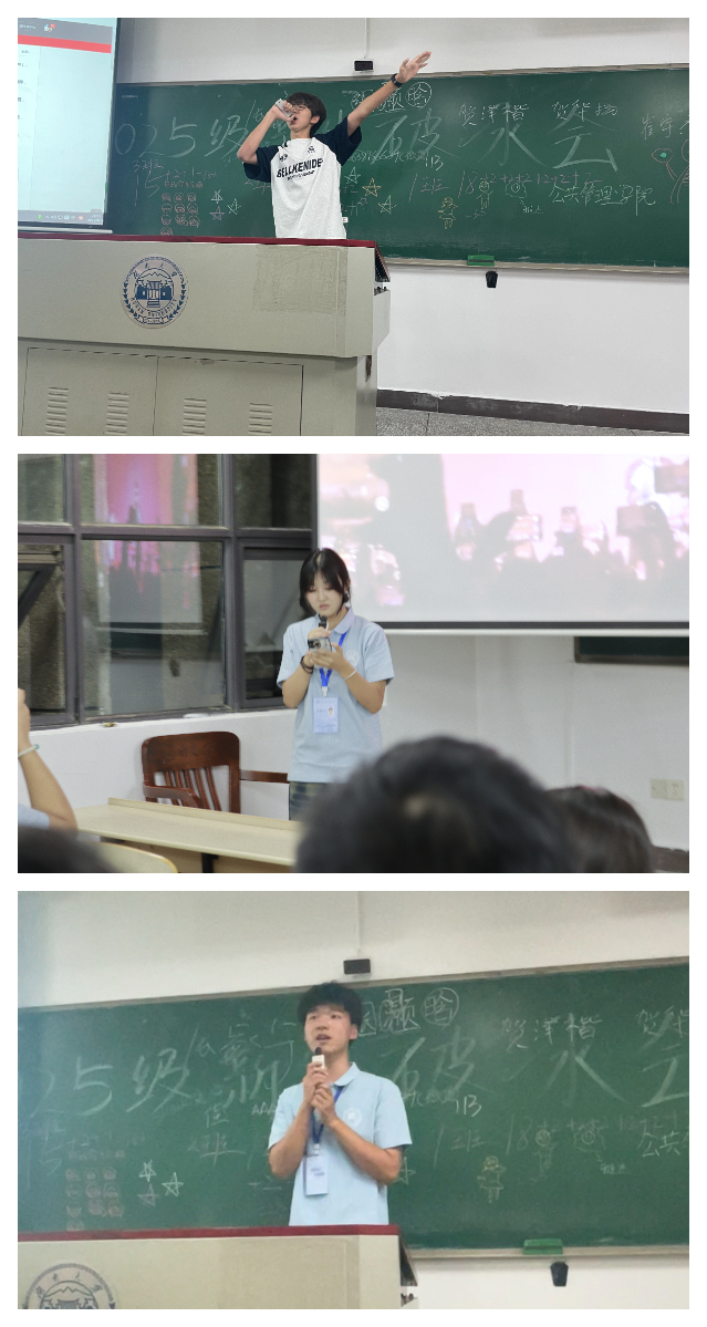 紧接着是 “新生上台自我介绍” 环节。迎新团队鼓励新生主动上台,介绍家乡、兴趣与展望大学生活,上台即可为小组加分。在氛围带动下,新生踊跃参与,在互动中,大家逐渐熟悉起来。