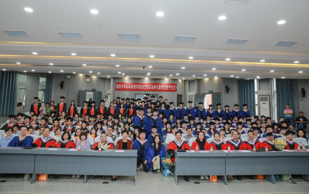 在复临舍报告厅举行2021年毕业典礼暨学位授予仪式。院长李连友教授、党委书记付蓉芬老师、副院长雷玉琼教授、副院长徐莹教授、副院长谭海波教授、MPA中心主任颜克高教授,学院教师代表,全体辅导员,全体本科毕业生、科学学位毕业研究生、MPA毕业生,往届校友代表参加仪式。学院党委副书记杜倩博副教授主持毕业典礼。