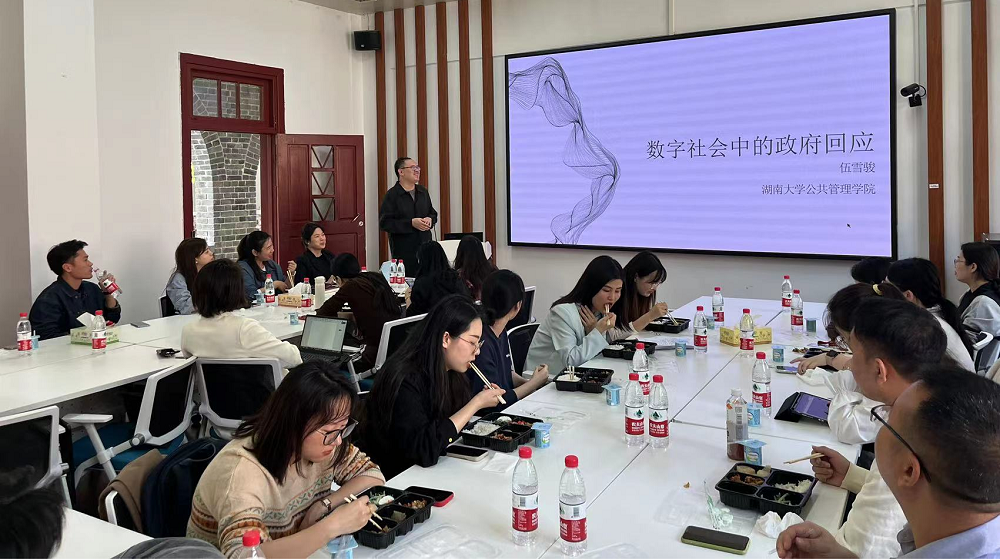 MPA第39期学术午餐会在这个秋意渐浓、阳光明媚的周末如期开展。本次午餐会由公管学院王楠老师主持,由伍雪骏老师主讲,30多名师生齐聚一堂,就“数字社会中的政府回应”这一近期备受关注的热门主题展开分享和讨论。