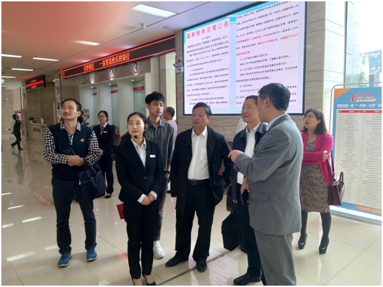 首先,余书记、张主任带领李院长一行参观了浏阳市行政服务审批局,并详细介绍了各个窗口的服务功能和特色:一楼主要是面向民众的日常服务窗口;二楼主要是面向企业的服务窗口;三楼是其他业务和会议室,很多审批业务都已经开通了网上办理。近年来,浏阳市行政审批服务局着力打造“市民之家”,坚持“最多跑一次”的改革,推进“放管服”改革升级提质,强化政务公开,优化政务服务,大大简化了审批程序,提高了办事效率。在全省乃至全国走在了“放管服”改革创新的前列。