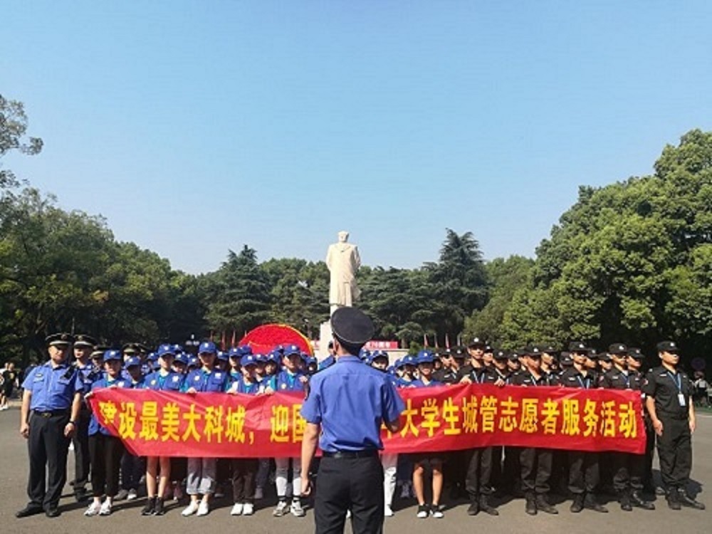 40余名志愿者在大科城城管大队的带领下,开展“爱祖国山水,护祖国蓝天”大学生城管志愿服务活动。