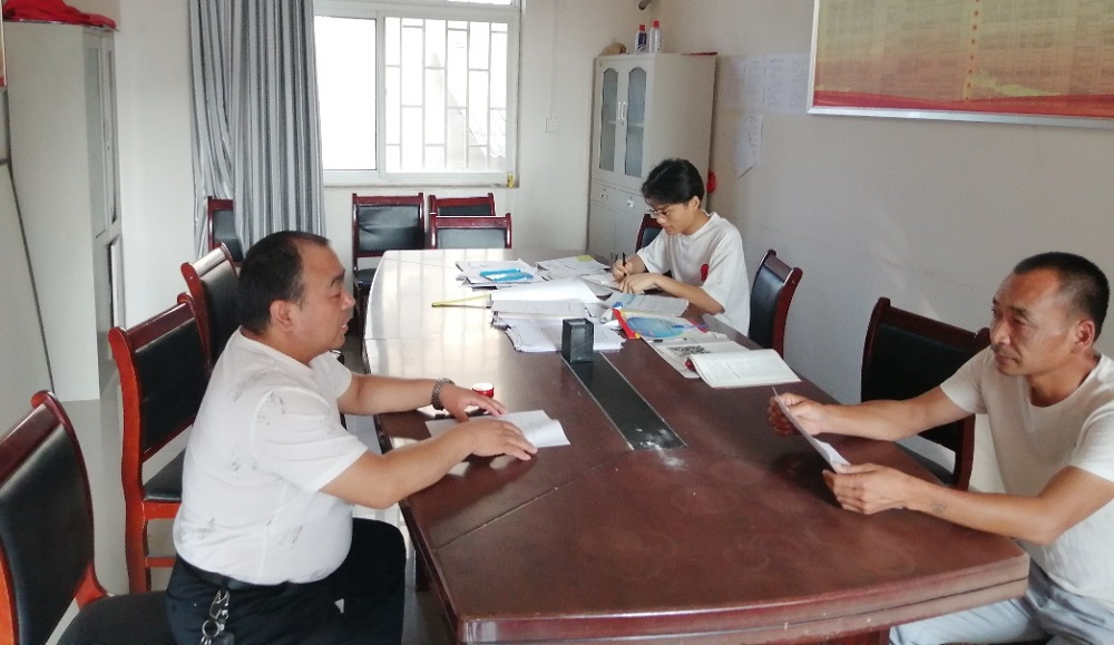 薛村村委会成员和驻村帮扶工作队对调研活动高度重视,在便民服务中心接待了调查小组。村支部书记吕富强详细介绍了薛村的历史沿革、产业发展、基础设施建设、精神文明建设、社会保障体系和村级党建工作等情况。驻村帮扶工作队队长介绍了该村在精准扶贫方面的基本情况,着重介绍了实施精准扶贫以来村子的新气象。随后,在与调查小组成员的交流中,村支部书记和扶贫工作队成员就精准扶贫实践过程中遇到的难题和对应解决问题的方法进行了详细的解答。