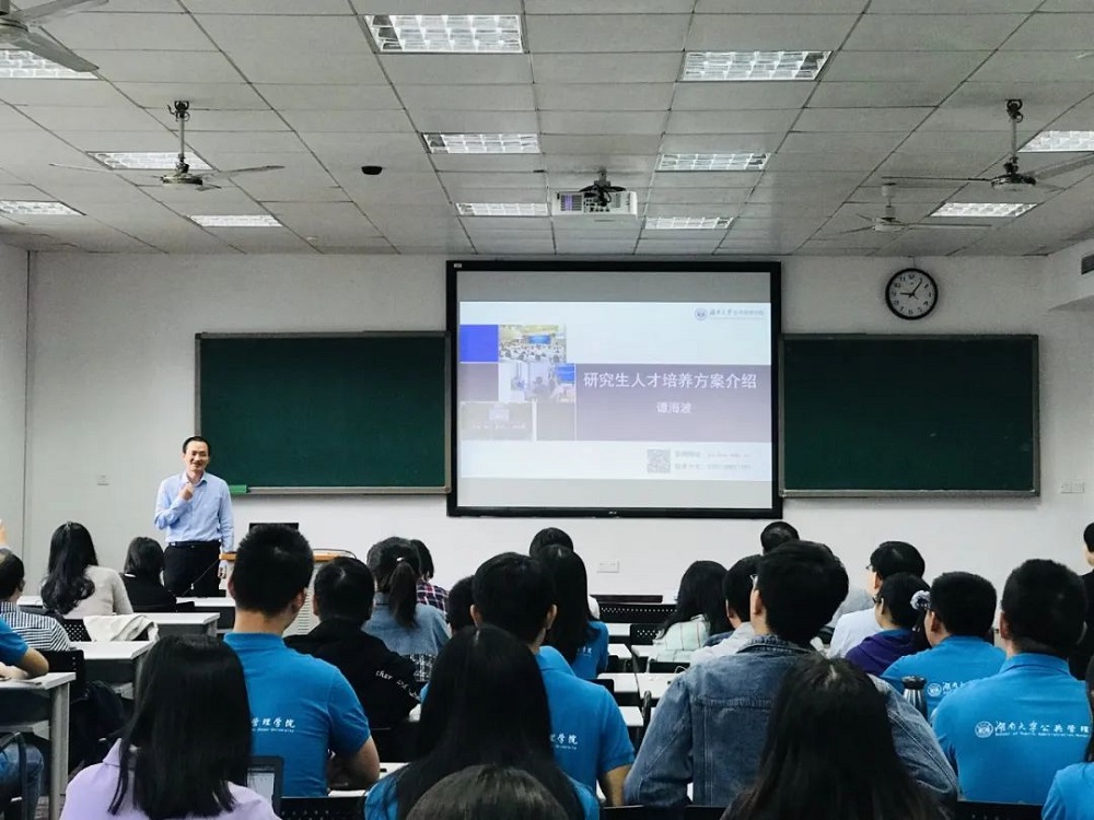 历史沿革、硕士培养目标、博士生的基本学制和学分要求以及硕士生的课程设置等。最后,谭院长分享了他的座右铭:“士人读书,第一要有志,则断不甘为下流;第二要有识,则知学问无尽,不甘以一得自足;第三要有恒,有恒,则断无不成之事。此三者缺一不可”,以此勉励2020级研究生新生,始终秉持着有志、有识、有恒的态度,积极地投入到研究生三年的学习之中。