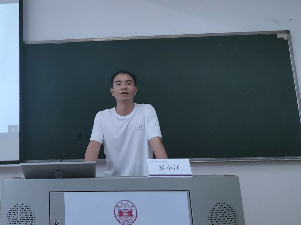 会议伊始,荣获湖南省2021届优秀毕业生的罗小江,以《觉醒年代》视频片段开启了本次分享。罗小江分享的主题是“笃定理想+主动创新学习+坚持不懈=无悔青春”,他从“追求崇高理想,笃定青年理想”、“主动自主学习,营造良好环境”、“坚持探索实践,主动认识感悟”三个方面进行介绍。他强调伟人的使命和理想都源于实践,科研与现实也密不可分,应积极进行实地调研、深入基层扎根基层,真正把论文写在中国大地上。其次,为启发大家选题思路和扎实学习,他分享了个人相关经验。最后,他勉励大家积极践行欧美av