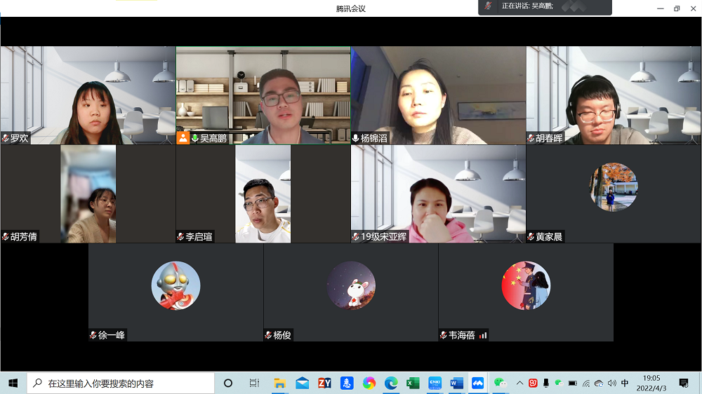 吴高鹏、刘亚梅、胡春晖作为学院研究生会主要负责人,分别从疫情防控期间专业作用、志愿服务、学生工作、楼栋管理、心理舒缓等方面阐述当前我校疫情防控的积极亮点和有待提高之处,同时就接下来学院研究生工作建言献策。