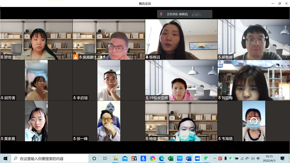 召开研究生骨干线上会议,院党务与人才培养办公室主任、研究生辅导员杨锦滔主持,学院主要研究生骨干参会。