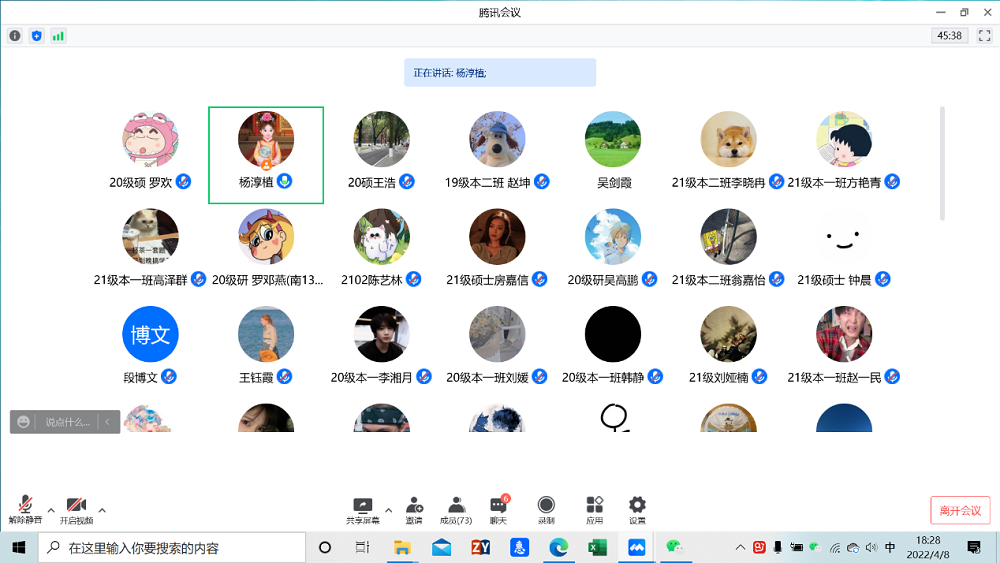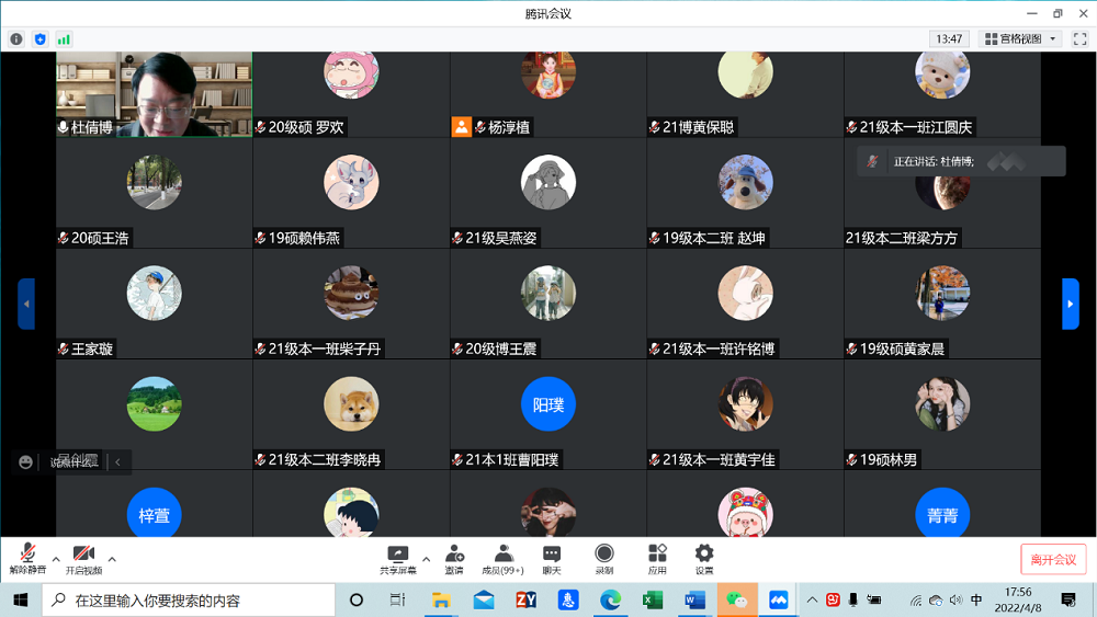杨锦滔补充学生离校返校注意事项,再次强调请假纪律。会后,全体本研学生干部开会讨论各班周末线上主题活动,并形成了初步计划。